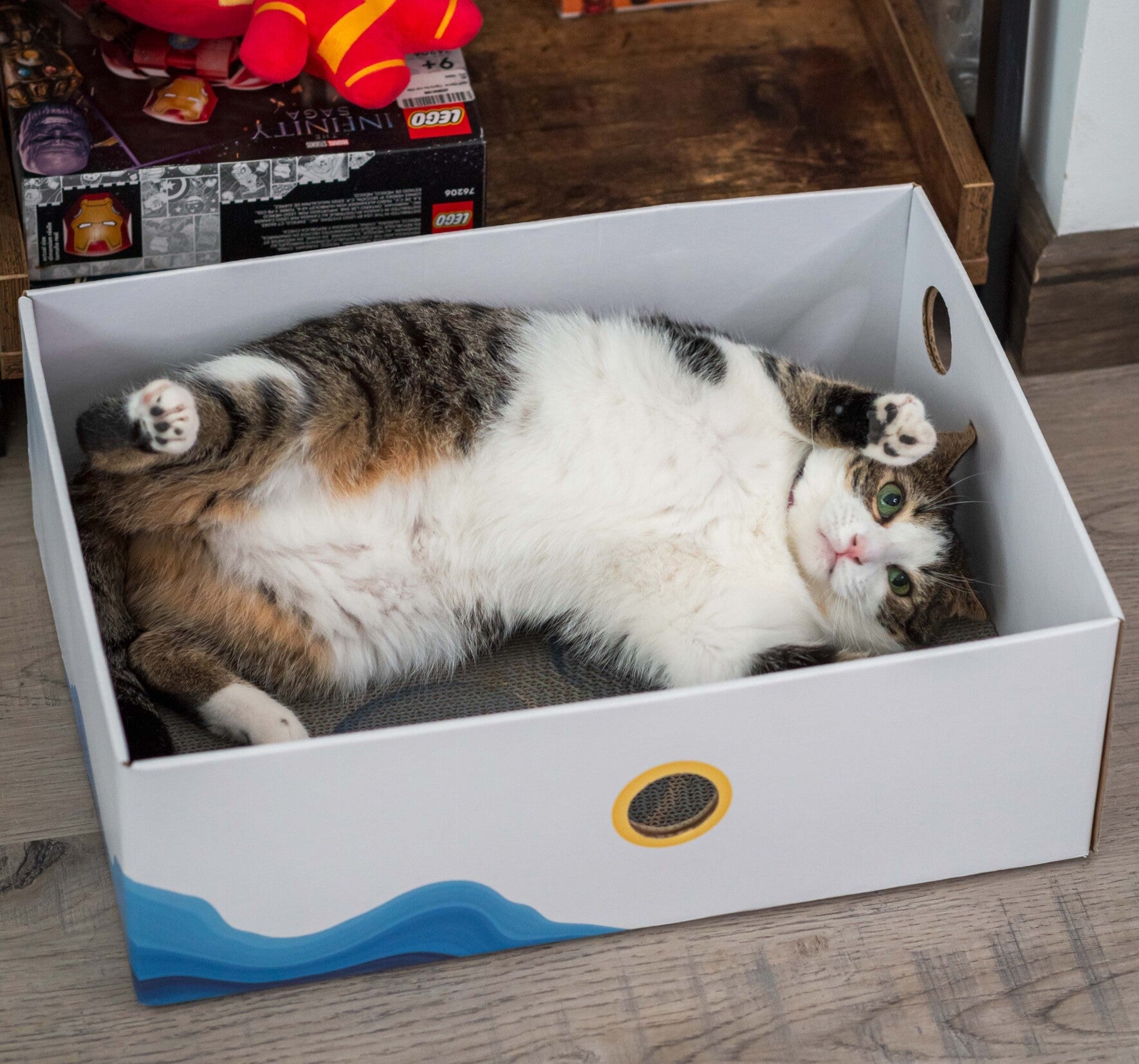 Descubrí que lo que más le gustaba eran las cajas, rascar superficies y esconderse 🤗